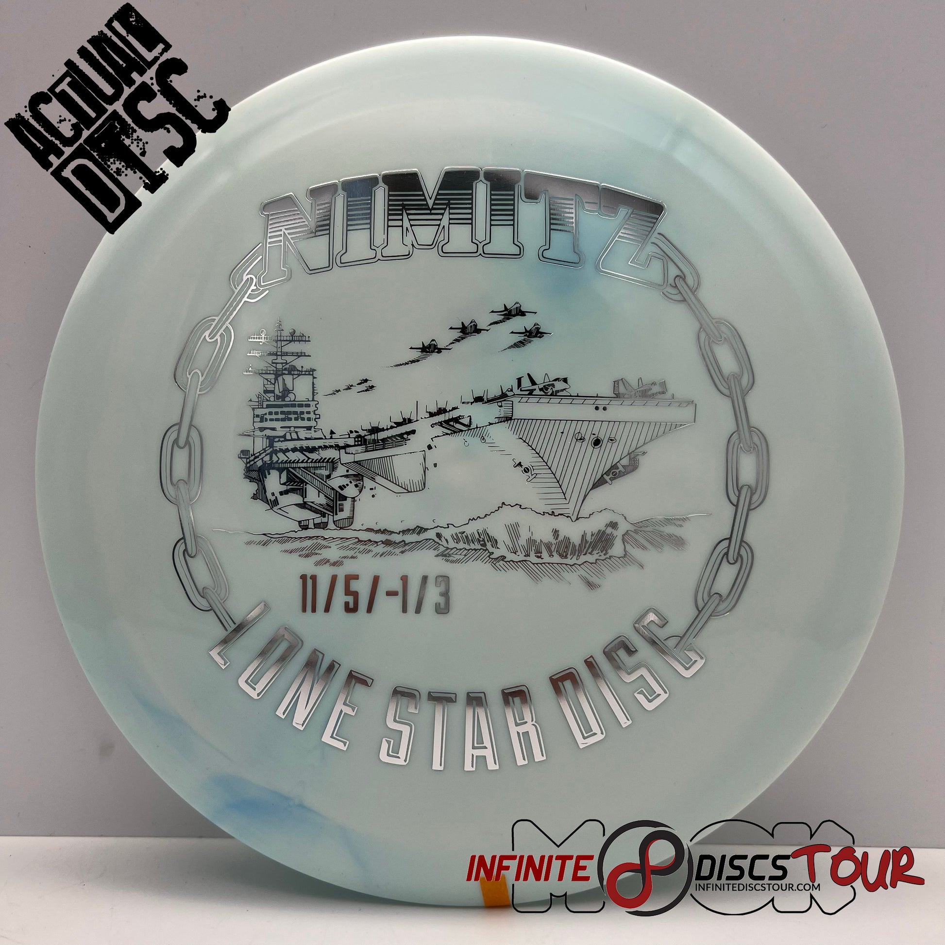 The Lonestar Nimitz is a stable to overstable disc golf driver. Named after the Fredericksburg native Chester Nimitz, the Nimitz is a disc that fits perfectly between the Curl and Warbird. This Distance Driver from Lone Star Disc has a slight turn and finishes with a reliable fade at the end of it's flight. It can handle the power of experienced throwers yet is not too fast for most players.